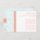 Direction card inserts for wedding in elegant and modern peach orange pink, light pastel turquoise sky blue and white chic and classic floral damask vintage pattern. Customize these cards with your wedding directions or other information to be included with your wedding invitations, also perfect for anniversary parties or birthday parties. Available in a wide range of matching wedding products.