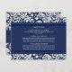 Direction card inserts for wedding in elegant and modern dark navy blue and cream off white classic floral damask pattern. Customize these cards with your wedding directions or other information to be included with your wedding invitations, also perfect for anniversary parties or birthday parties. Available in a wide range of matching wedding products.