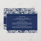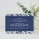 Direction card inserts for wedding in elegant and modern dark navy blue and white classic floral damask pattern. Customize these cards with your wedding directions or other information to be included with your wedding invitations, also perfect for anniversary parties or birthday parties. Available in a wide range of matching wedding products.
