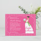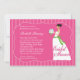 Modern invitation features a wedding dress with the words "Bridal Shower" in an ornate frame and a stripes pattern background. Fun design ideal for a young bride with a taste for fashion. Stylish and eye catching invitation.