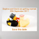 Two cute yellow rubber ducks dressed as a bride and groom. Two kissing ducks Save the Date card with customizable text for your own special message, names, save the date or add your own image.