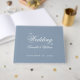 Wedding Dusty Blue Simple Script White Calligraphy Guest Book