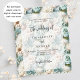 Dusty green and white flowers as background. Personalize and add your names and details.
