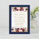 Wedding Elegant Burgundy Floral Blue Gold Frame Invitation