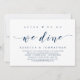 Modern Script classy navy blue theme, wedding elopement invitation card (After We Do, We Dine). It is perfect for your wedding elopement casual lakeside celebration.