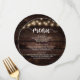Modern Rustic Dark Brown cottage wood Party, String Lights, Round Plate shapes, Wedding elopement Dinner Menu. A perfect menu card for your big day. You can change the script font colours and change the menu contents and fonts to meet your needs.