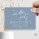Elegantly announce your happily ever after with our modern dusty blue themed wedding elopement celebration invitation card, "Happily Ever After Party". Tailored for couples continuing their love story, this invitation strikes a perfect balance of sophistication and charm, setting the scene for an unforgettable event. Featuring a modern contemporary script design in landscape format, it adds a touch of timeless grace to your special day. Designed by the talented TeeshaDerrick, this invitation is a stylish expression of your enduring love.