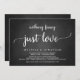 Mark the beginning of your forever with elegance using our contemporary rustic chalkboard themed wedding elopement celebration invitation card, "Nothing Fancy Just Love". Perfect for couples extending their joyous occasion, this invitation exudes sophistication with a hint of playfulness, setting the stage for a memorable event. Adorned with a timeless modern script design theme, it adds a touch of refined charm to your festivities. Crafted by TeeshaDerrick, this invitation promises to beautifully capture your love story.