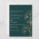 An emerald green background decorated with simple golden ginkgo leaves. Personalize and add your names and the details.