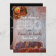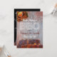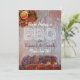 Wooden background with photos of chicken wings at top and barbecue ribs at bottom on front. Includes customizable text on front and back of card -templates are at right. Reverse side has a smokey, dark background with photo of ribs at bottom. Enjoyable engagement party barbecue invitation.