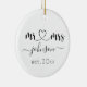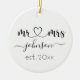 Mr. and Mrs. personalized last name or surname with cute girly heart Christmas Ornament with customized name and established date which makes a personalized and special gift for a wedding, anniversary, Christmas or engagement gift.