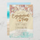 Engagement Party Invitation Card Templates - Summer Sandy Beach Write in Sand Text with Starfish and Seashell.