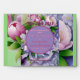 "You Are Cordially Invited to Attend The Wedding of -The Parties- ", In Holy Matrimony & The Date", inside A Circle Horizon (Violet with Plum Border), surrounded by a Boquete of Pink & Violet Peonies with flowing Satin, Violet Ribbon & Bow, with "Date", above & "Official Invitation inside", below Circle Horizon, all on Violet background. - Enlarged Flower background, Leaving slim Border at side edges & Pink Tulip lines up. -----