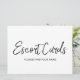 A stylish hand lettered "Escort cards please find your name" sign