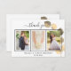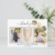 Add 3 of your own photos and a thank your note. A classic white background with black text and frame, golden eucalyptus. The text: Thank you on the front and your names on the back are written with a stylish hand lettered script with swashes.
