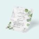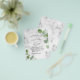 Marble print as background decorated with eucalyptus greenery, sprigs. Personalize and your name and ceremony details.