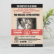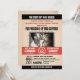 This is an invitation that borrows from vintage event posters. The background is a soft parchment look. The typography is bold and attention-getting. The couple's names are highlighted in the bright red banner. Add "The Bride" and "The Groom" as nicknames or their own personal nicknames for added fun. Use a large, high-resolution photograph to replace the placeholder photo. Information regarding the ceremony prints below. Please be sure to PROOFREAD your changes as there is a lot of customizable text. Available in a version without a photograph and with matching products.