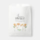 These wedding favour bags feature orange watercolor poppy flowers with the words "Love is Sweet" in trendy typography. Use the template fields to enter your custom thank you details. An elegant choice for weddings with a wildflowers theme, Unique watercolor art and design by Victoria Grigaliunas of Do Tell A Belle.