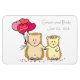 White background magnet with cartoon of cute hedgehog couple holding hands and holding heart shaped balloons with the text "just married". Customisable template to change to the names of the Groom and Bride and the wedding date. Suitable as a wedding party favour.