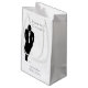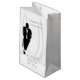 Wedding favour gift bag black and white bride and groom design. Customise this wedding favour gift bag with your wedding details. Should you require any help with customising then contact us through the link on this page. Black and white bride and groom design personalised wedding favour gift bag