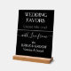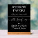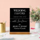 Wedding favours please take one is written on top in white typography against black background. With love from the bride and groom is written in script and italics typography. Insert Couple's First Names. Wedding reception table display. Designs by TamiraZDesigns.