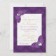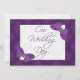 Flat Wedding Invitation with butterflies. This is part of the Butterfly Brocade Collection for Weddings in purple. There will be four other jewel-tone colorways available, peacock, garnet, copper and a lovely fern green. The background is an intricate brocade design, it is not raised, it will be printed flat. The butterflies have the appearance of stained glass and like wise are not raised. Both the colour and the white section for text are in the brocade pattern. Also available will be items such as postage, table numbers, table place-cards, thank you cards, RSVP, reception,save the date cards as well as other matching products.