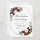 Wedding Floral Burgundy Blue Geometric Silver Invitation