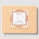 A detailed border, foil design with elegant typography. It is captioned with: Wedding guestbook, the couple’s initials (RS), names (Robert Wisdom & Sarah Thompson), and the date and venue (June 26, 20XX, St. Patrick’s Cathedral). Easily edited and personalized.
