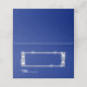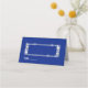 This folded name place card is shown in basic white with a sapphire blue background colour, shown with a frame of diamond sparkle.