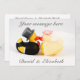 Bride and groom rubber ducks kissing. Cute wedding invitation or card that can be customised with your own text, names, date and images.
