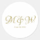 Wedding gold script monogram elegant custom white classic round sticker