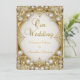Wedding Gold White beige Cream Pearls Oval frame Invitation