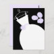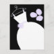Bridal themed post card with a pretty design in shades of purple, black and white featuring a stylised wedding dress on a hanger accompanied by a bouquet on the front, and pale purple back. A customizable design for you to personalise with your own text, pictures and ideas.