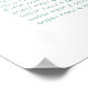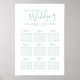 Wedding white with green text simple modern art table plan poster. Edit this guest seating table chart with your own seating arrangements and guests names for your wedding dinner. Other matching items and colours as available. Designed by Sarah Trett for www.mylittleedenweddings.com