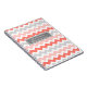 Spiral wedding guest book notebook in elegant peach orange pink, charcoal grey and white retro and casual chevrons zigzags stripes pattern. Customizable with your names and wedding date.