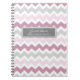 Spiral wedding guest book notebook in elegant light pastel pink, charcoal grey and white retro and casual chevrons zigzags stripes pattern. Customizable with your names and wedding date.