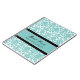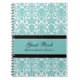 Spiral wedding guest book notebook in turquoise blue, black and white classic floral damask pattern, with customizable text to add your own name and wedding date.