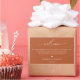 Elegant and modern wedding guest welcome bag label. Template provides lines for your message, names and event date. White typography on rust orange background.