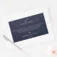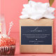 Elegant and modern wedding guest welcome bag label. Template provides lines for your message, names and event date. White typography on navy blue background.