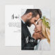 Handwritten Wedding Thank You Cards that have a photo on the front and back. The Thank you cards contain a modern white and Black hand lettered cursive script typography that are elegant, simple and modern to use after you minimalist simple wedding day celebration.