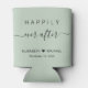 Sage green wedding can cooler party favours with "Happily Ever After" in a mix of simple typography and a trendy script with swashes, your first names and the date.