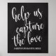 An elegant cutting edge wedding sign, features the text "Help us capture the love" in a extroverted script font, the brush texture adds a spontaneous and playful feeling. The background color can personalized according to your needs and preferences, please contact me if you have any special request.