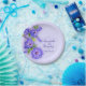 Beautiful painted watercolor purple blue hibiscus wedding paper plates. Edit these art wedding plates with your own name and wedding date. Ideal for both church, country style, garden, blue themed and simple registry weddings. A great personal addition to your wedding tables or for after wedding buffets or party food. Personalize with your bride and groom's names. Uniquely painted in pan watercolors and designed by Sarah Trett. www.sarahtrett.com for www.mylittleedenweddings.com