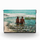 Design features a romantic calligraphy script in white with the phrase "Our honeymoon journey to:". Easily customize with destination and date. Ideal wedding gift, keepsake for yourself and others.