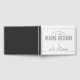 Stylish airy open-lined text elements compliment the front and spine of the book, while solid charcoal grey cover the spine and back. A visual treat that will capture the eyes of your wedding guests and out-of-towners and leave them wanting to leave their custom signature and message inside.