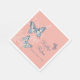 Beautiful graphic three art butterflies and floral swirl in shades of coral orange-pink, dark muted blue cream on a coral background wedding paper napkins. A great personal addition to your wedding tables or for after-wedding drinks. Personalize with your bride and groom's names. Perfect for butterfly-themed or garden weddings. Other matching items and colour options are available. Uniquely painted in watercolor and design by Sarah Trett for www.mylittleeden.com