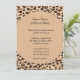 This romantic classic wedding invitation is shown in a tan colour safari leopard print in a modern layout with text in a lovely script print and with script text highlighting the names of the Bride and Groom.