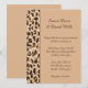 This romantic classic wedding invitation is shown in a tan safari leopard print in a formal layout with text in a lovely script print and with script text highlighting the names of the Bride and Groom.