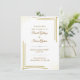 A sophisticated wedding invitation with elegant gold borders and refined typography, capturing timeless love and celebration.