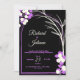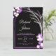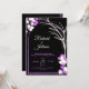 wedding invitation black background purple flowers